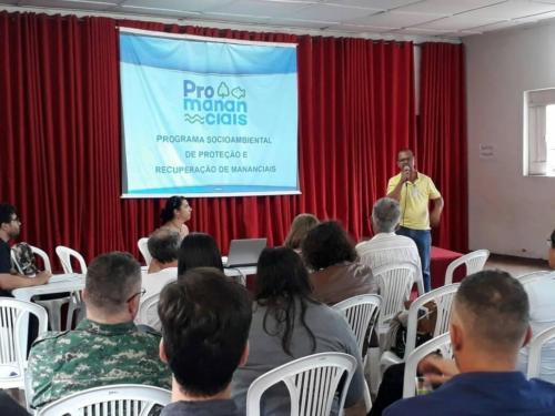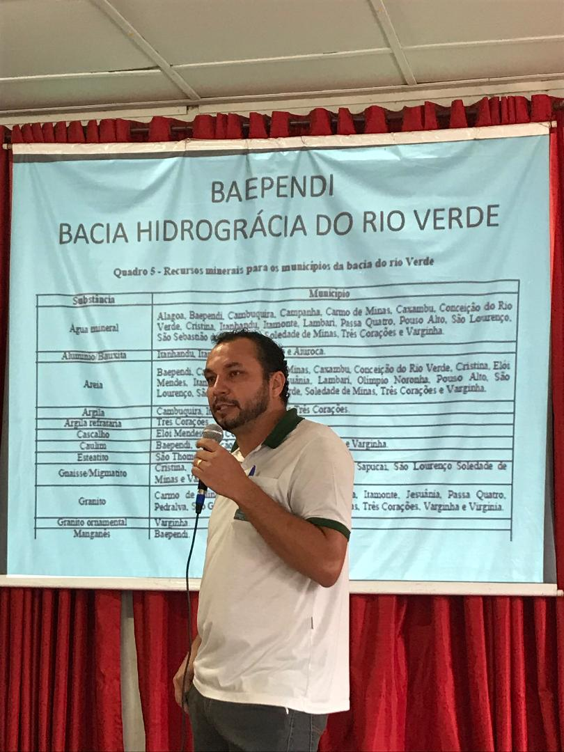 Em continuidade, o Coordenador de desenvolvimento Urbano e Rural e Presidente do CODEMA de Baependi, Sr. Marcos Antônio Pereira, apresentou o sistema municipal de meio ambiente da cidade, seu funcionamento, ações de educação ambiental, projetos como de arborização integrada e sinalização das estradas. Também abordou sobre a questão preocupante dos empreendimentos de extração de areia, agradecendo o apoio da ARPA que realizará as perícias. Por fim, juntamente com o Sr. Neo Lara, abordaram a questão que gerou polêmica no município: a implantação de uma PCH – Pequena Central Hidrelétrica na zona rural de Baependi. Segundo explicação, o edital que convocava a população para consulta pública foi anulado, uma vez que já havia decisão do CODEMA indeferindo a implantação do empreendimento por tratar-se de área de unidade de conservação de proteção integral.