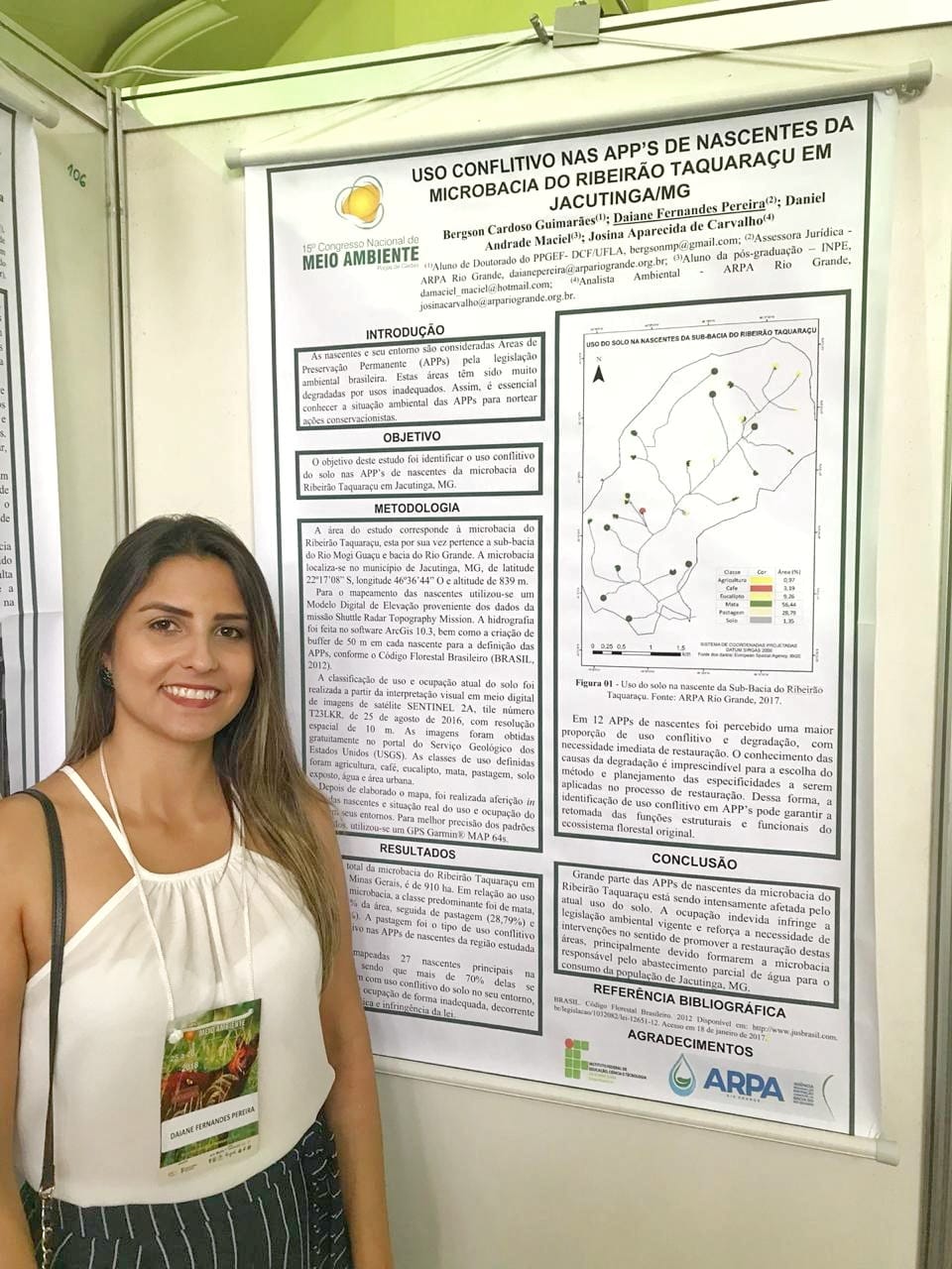 Também foi apresentado o “Uso Conflitivo nas APPs de nascentes da Microbacia do Ribeirão Taquaraçu”, que visou mapear nascentes no município de Jacutinga para conhecer as causas da degradação, buscar escolher o melhor método e planejar as especificidades a serem aplicadas no processo de restauração. Esse trabalho é resultado de parte do diagnóstico do “Projeto Proveráguas Jacutinga”, também executado pela ARPA.