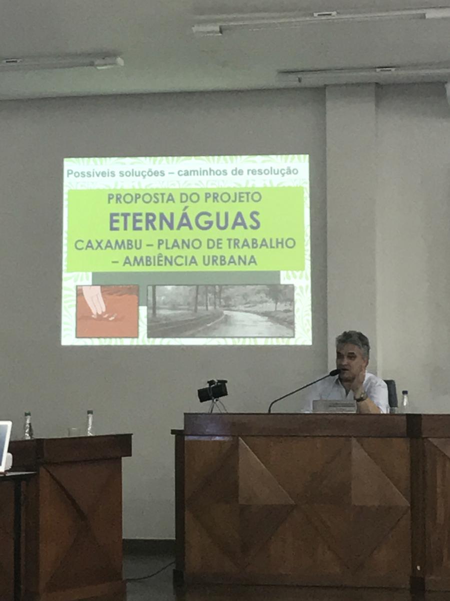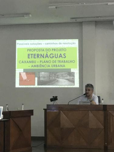 Dr. Bergson Cardoso Guimarães, Promotor de Justiça da comarca de Caxambu e coordenador do NUTA – Núcleo Integrador para Tutela da Água iniciou os debates explicando sobre a ambiência urbana e sobre as consequências que a falta de regulamentação pode ocasionar, citando como exemplo a poluição visual. Ele também apresentou o Projeto Eternáguas Caxambu, executado pela ARPA Rio Grande, que possui um plano de trabalho específico para tratar da ambiência urbana no município de Caxambu.