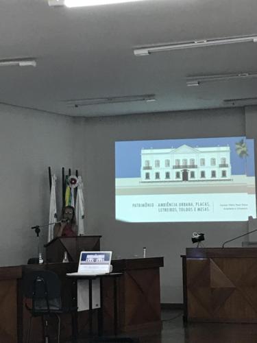 Em continuidade, a Arquiteta e Urbanista, Larissa Vilela Pena Siqueira, falou sobre a temática de forma técnica e como é abordada em outros municípios como São João Del Rei, que possui regulamentação para metragem dos toldos.
