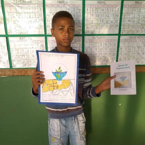 Primeiro colocado no concurso de desenhos da Semana do Meio Ambiente: Natan Gabriel da Silva Lima, estudante da Escola Curumim. Para encerrar as celebrações, todos os desenhos foram expostos na Praça Municipal de Nepomuceno, MG.