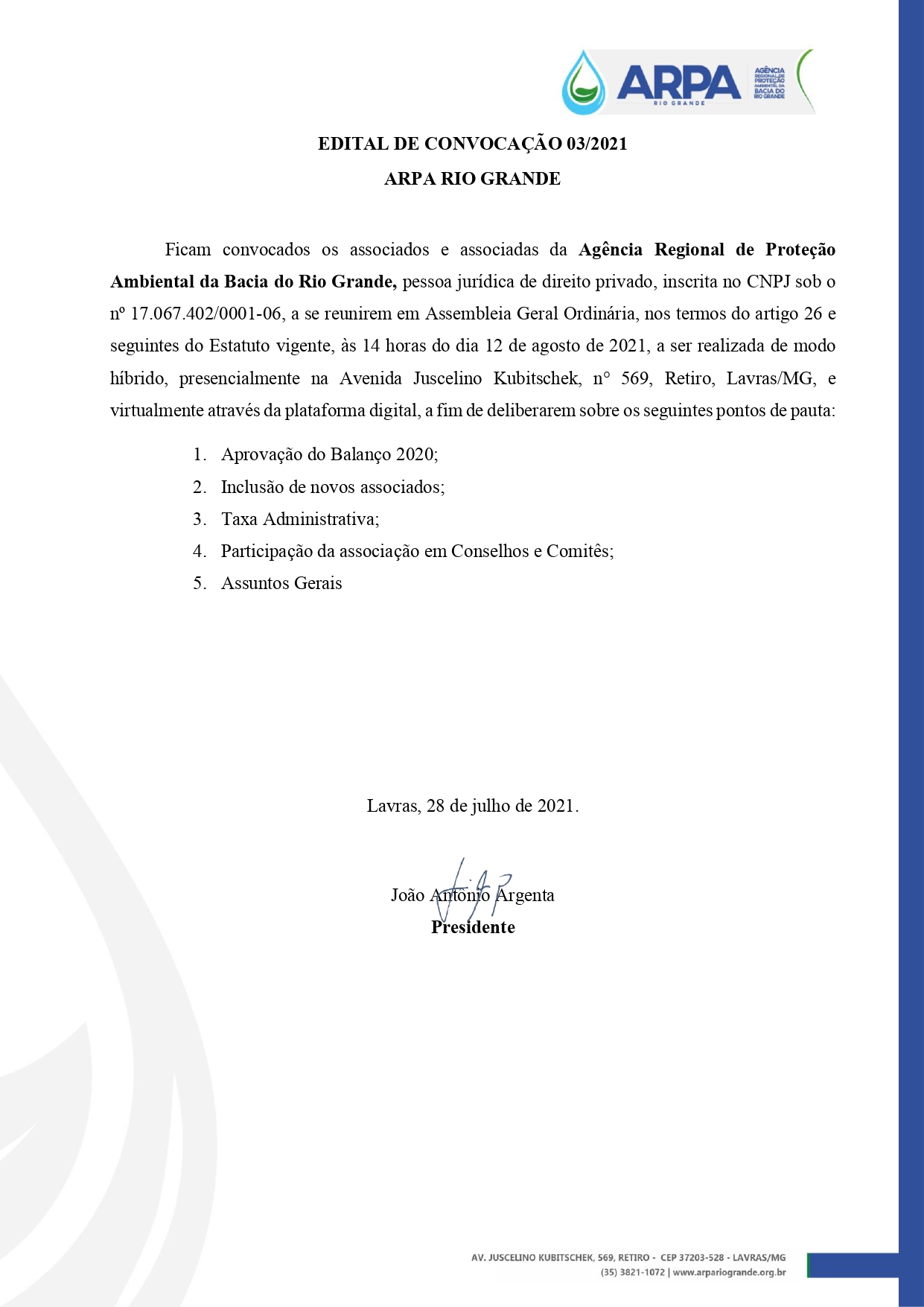 Edital 003/2021 – Convocação para Assembleia Geral Ordinária