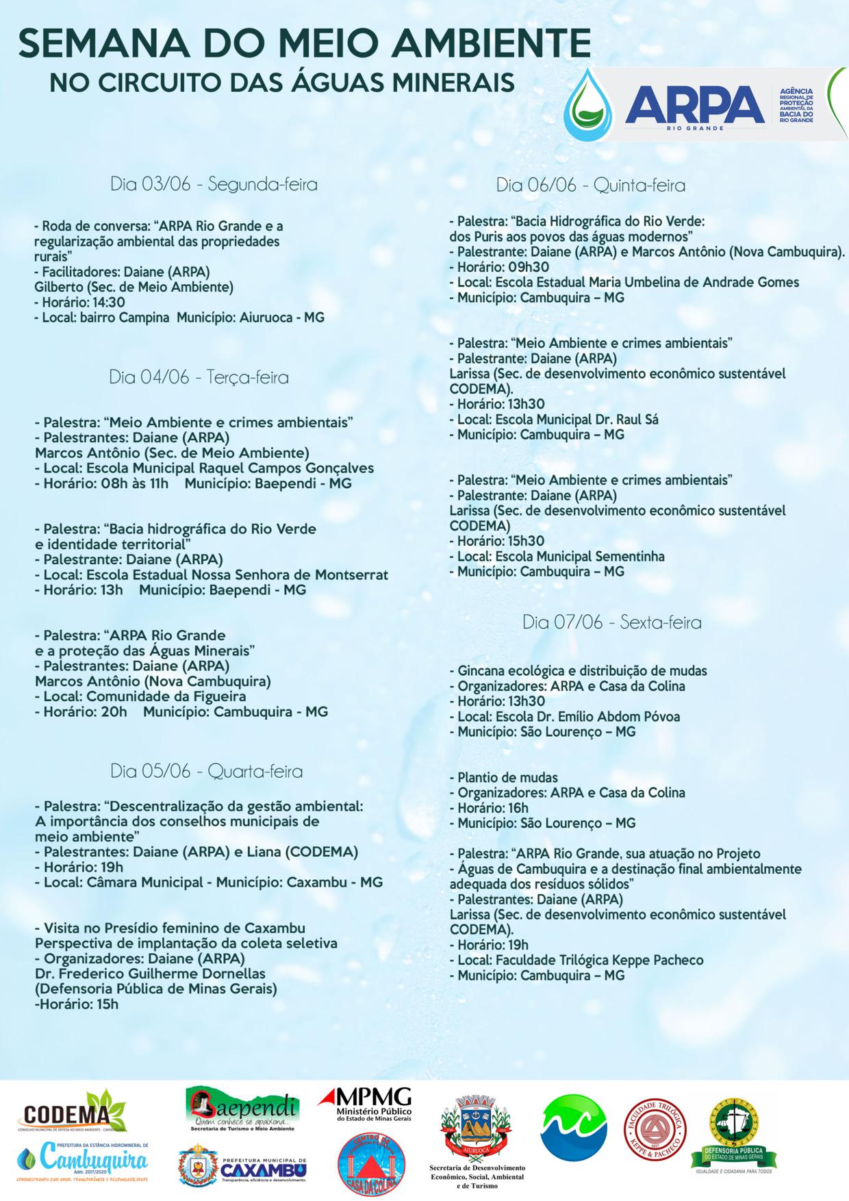 Em razão da importância da conscientização e melhoramento do meio ambiente, a ARPA Rio Grande divulga sua agenda de eventos: